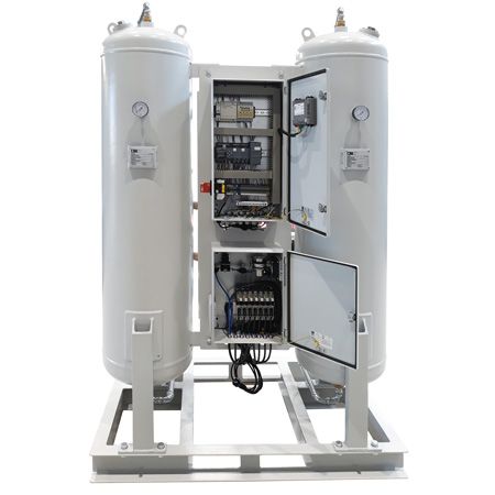 Os geradores extraem o nitrogênio/oxigênio dos outros gases, disponíveis no ar ambiente, aplicando a tecnologia PSA (Pressure Swing Adsorption). Durante o processo de compressão PSA, o ar ambiente limpo é levado a um leito de peneira molecular, que permite que o nitrogênio passe como um produto gasoso, mas adsorve outros gases.
